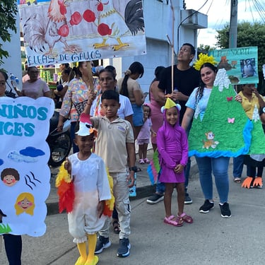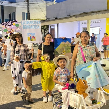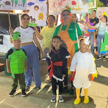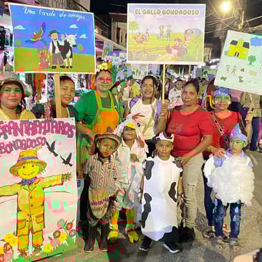 La literatura cobra vida cuando abandona el papel y se hace cuerpo. En el desfile y la noche cultural, los estudiantes transitaron del lenguaje escrito a los lenguajes expresivos y performáticos. Esta galería visual captura cómo la dramatización y el folclore funcionan como herramientas didácticas para la apropiación profunda de las historias. Se evidencia aquí la teoría de las inteligencias múltiples, donde la narrativa se reinterpreta a través de la danza, la música y la estética visual.